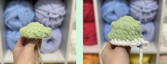 Für die Augen und Wangen des Spielzeugs können Sie, wenn gewünscht, verschiedene Techniken anwenden. Hier können Sie Ihrer Kreativität freien Lauf lassen. Da das Spielzeug sehr klein ist, kann es auch dekorativ verwendet werden. Das Spielzeug besteht insgesamt aus 4 Teilen: Körper, Mund und Flossen. Lassen Sie uns jetzt mit dem Häkeln des Spielzeugs beginnen. Das Spielzeug wurde von _.yarnivore._ entworfen. Wenn Sie möchten, können Sie sein Instagram-Profil besuchen und ihn kontaktieren.